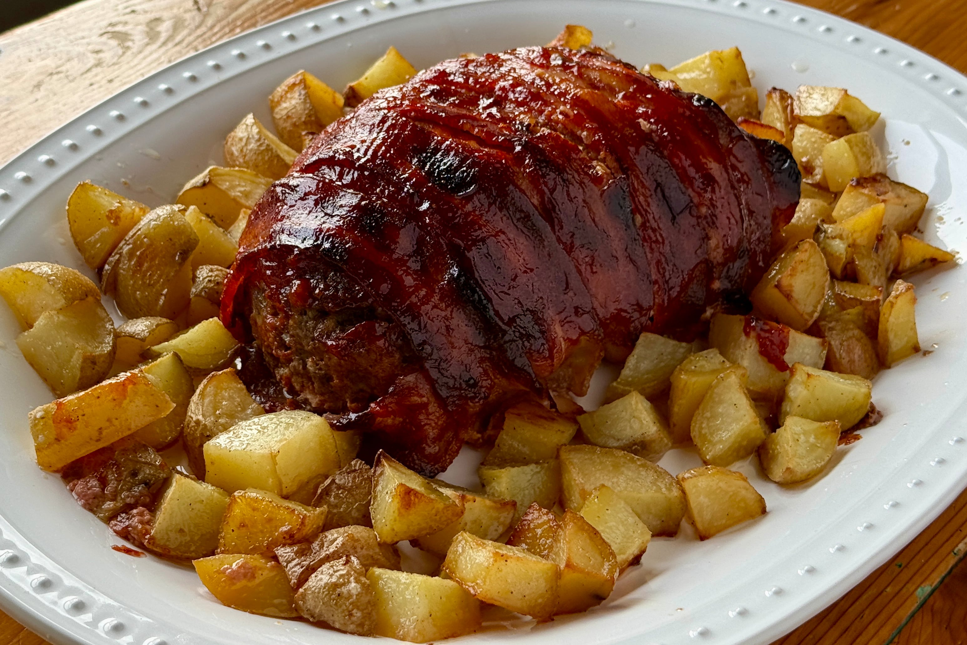 Note: You can optionally line the edge of the loaf pan with potatoes or carrots tossed in olive oil, salt and pepper for a tasty roasted vegetable side to go with your entree — a convenient way to kill two birds with one stone.