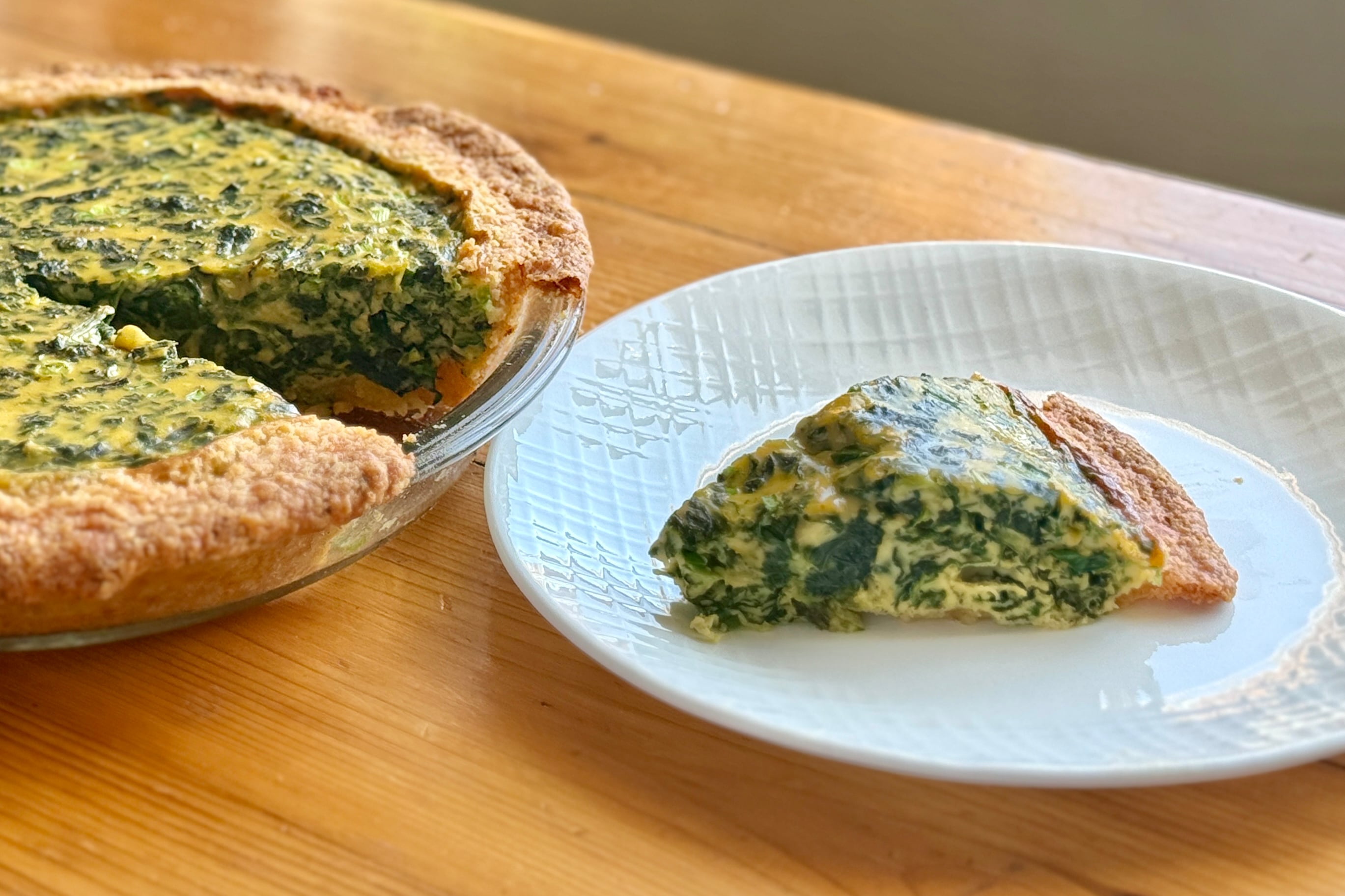 Pour the spinach mixture into the crust and bake at 400°F for 15 minutes.